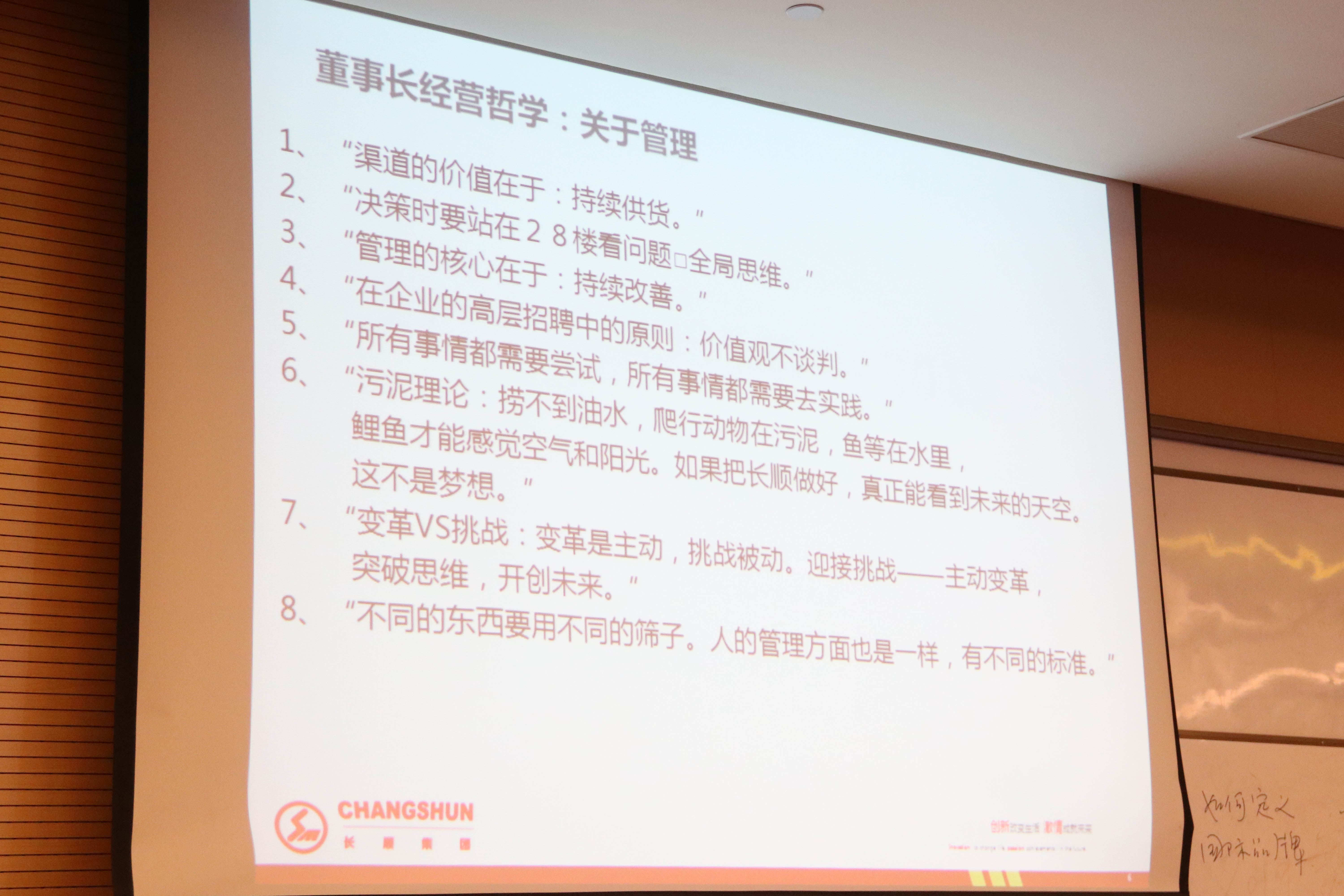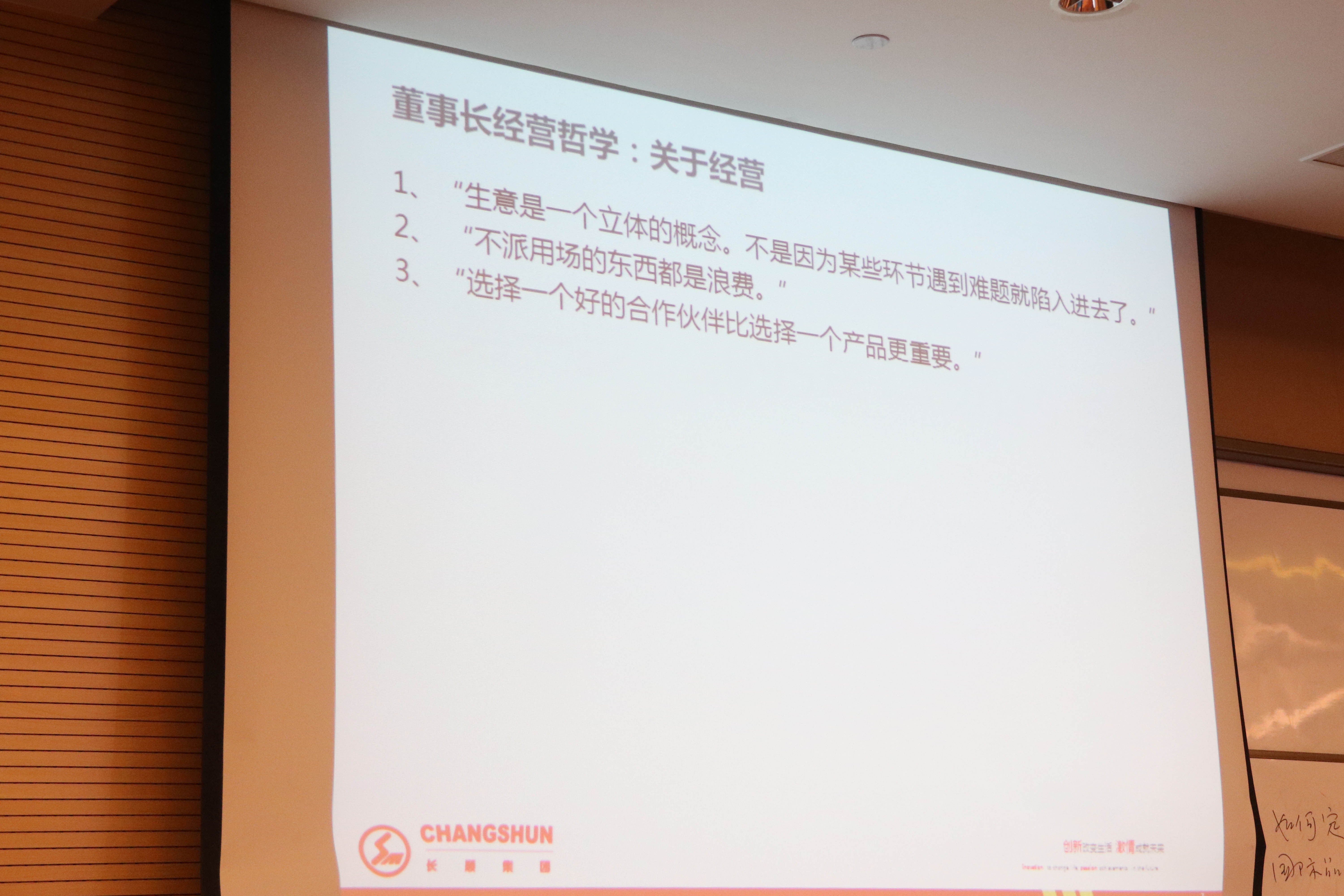 顾董分享他创业的时候卖过钢材、卖过水泥、卖过棉花和轮胎,在摸索中不断前进,后来公司有了规模又经历了金融危机,经历了一次次挫折,有了现在的长顺。一路走来,顾董的感悟就是做生意需要加加减减,看清未来的运势,学会管理,学会分析,抓住机遇。