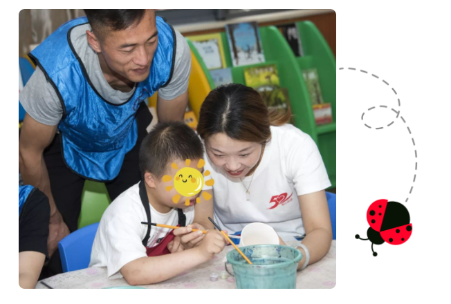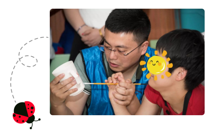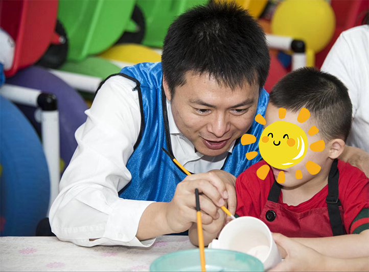 在福利院老师的指引下,长华的伙伴们与孩子们围着圆桌坐好,开始陶艺釉下彩绘课堂。这样的活动,对于普通孩子来说可能比较的简单,能自己上手操作且有自己的创意,但是对于他们就很困难了。伙伴们都柔声细语,格外的有耐心,一边握着孩子的手画画,一边还要注意孩子防止让他误食颜料,颜料被孩子撒在手上,也不在意,却先是把孩子的手先擦干净,每个人都散发着满满的爱意与关怀。