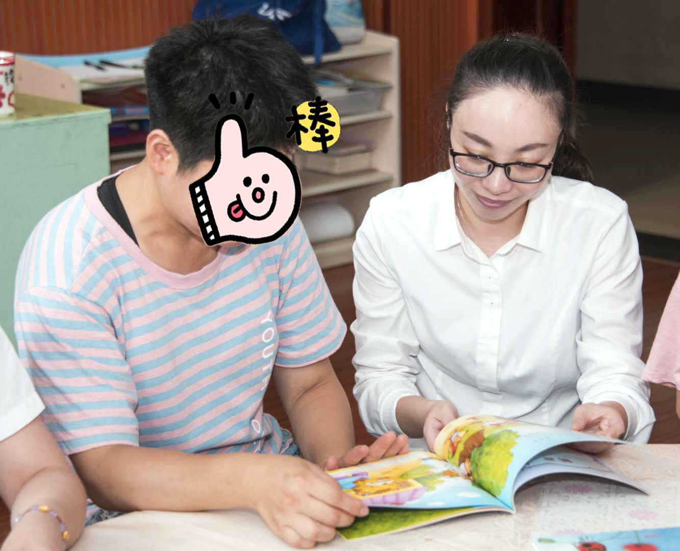 在等待烤制的时间里 孩子拿出绘本 和我们分享平时他们看的故事 他们都认识 白雪公主、佩琪、熊宝宝 佩琪格外受到孩子的喜欢