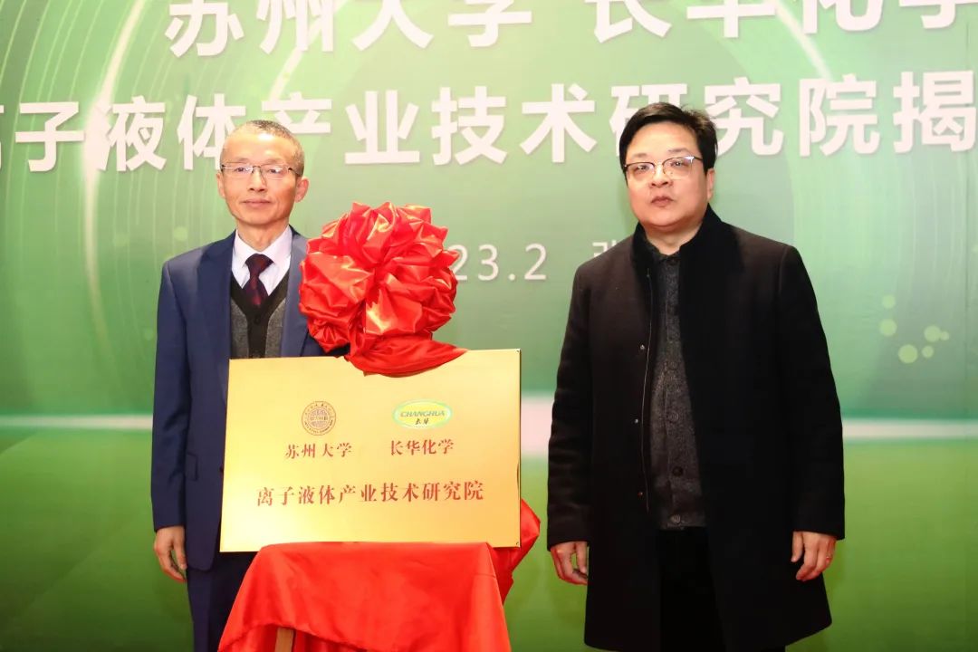 2023年2月18日,长华化学与苏州大学战略合作签约暨长华化学-苏州大学离子液体产业技术研究院揭牌仪式顺利举行。长华化学秉承“创新科技,绿色化学”发展理念,与苏州大学的战略合作将共同推动离子液体这一新技术在绿色化学发展上的应用。长华化学也将结合苏州大学的高校资源和自身内部上下游资源形成产学研大平台并立足聚醚行业,努力成为张家港绿色低碳发展的典范,为本地的科技创新和国家“双碳”目标的实现做贡献。